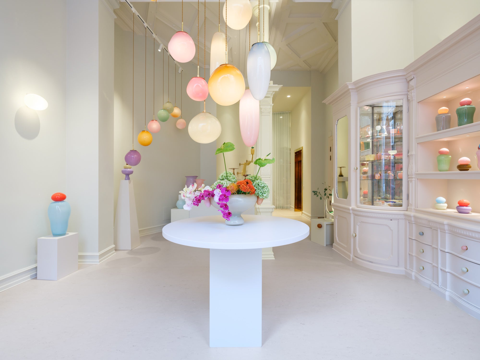 In our space located at the heart of Copenhagen, Helle Mardahl’s long-time dream of creating an indulging candy store has come true. With enchanting candy objects in sugary sorbet and pastel nuances everywhere, it’s hard not to want to try everything. It’s a playful universe of organic shapes, delicious colours and cute combinations – a long lost childhood fantasy.